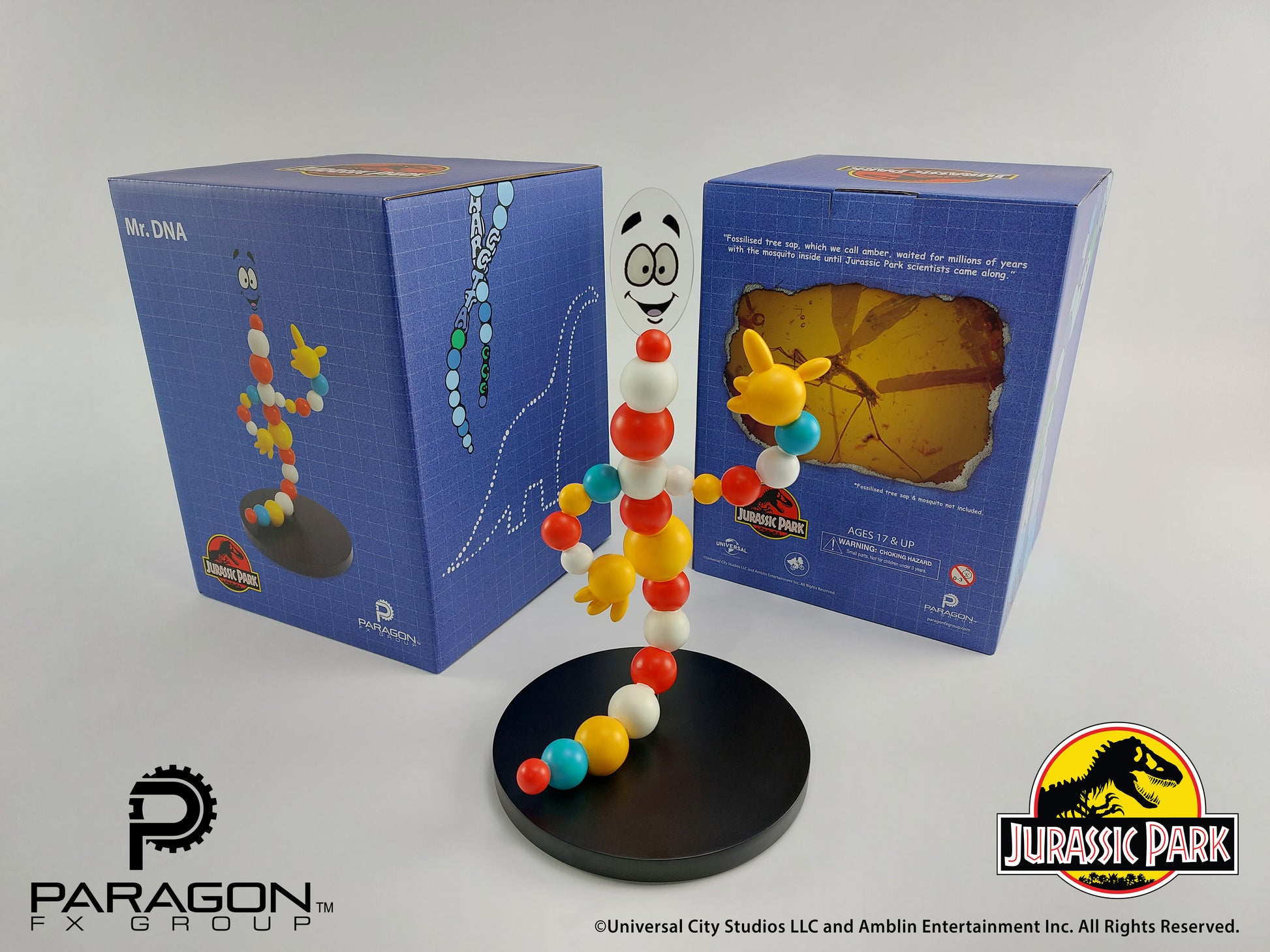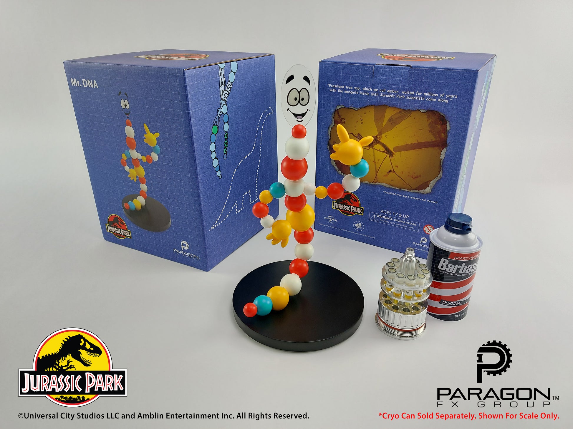 While perfect as a standalone collectible, Paragon FX group is proud to offer this piece as the perfect companion to our previous and forthcoming replicas from Jurassic Park. I mean, who better to stand over and guard your Cryo Can than Mr. DNA?!
